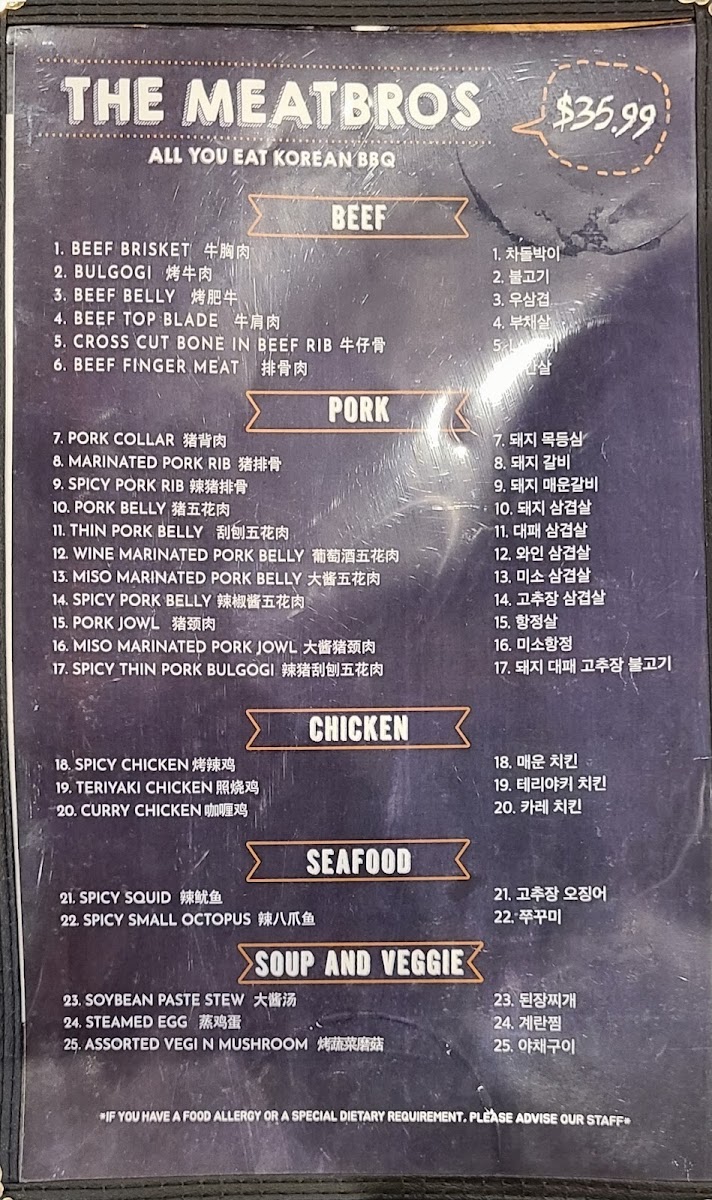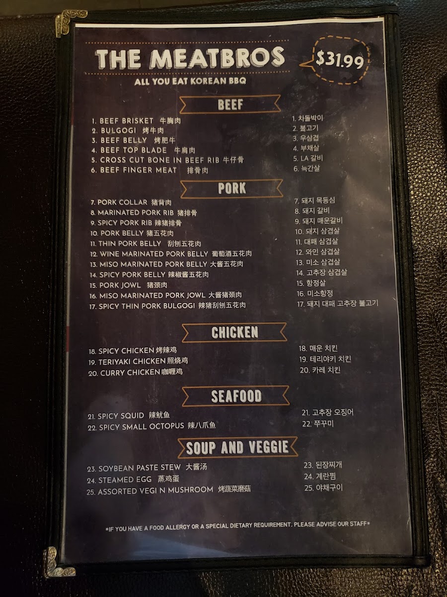The Meat Bros - Korean BBQ Menu